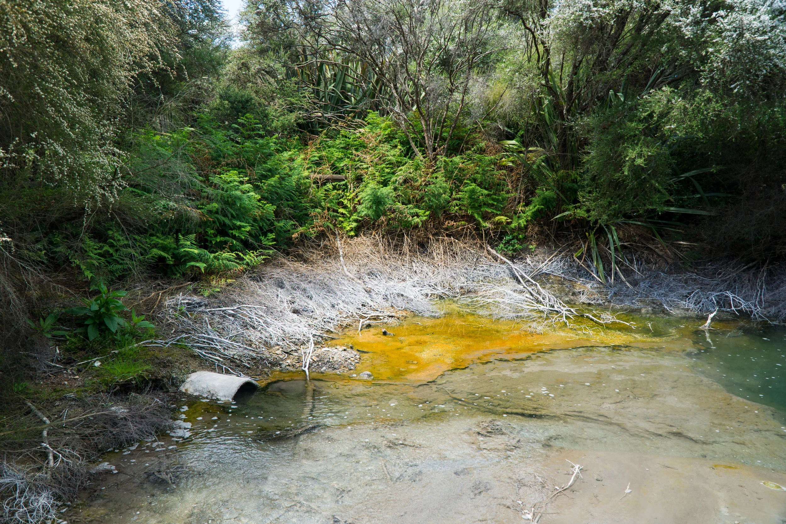 The ground in Rotorua is quite literally bursting open with geothermal attractions. There’s a free park conveniently planted right near the main street through town with all sorts of naturally-occurring portals to the molten world beneath the Earth’s crust, where water boils, mud bubbles up, and heat spits angrily from hidden crevices and singes the ground. It chars nearby plants until they turn white and brittle like sticks of chalk. There’s steam everywhere. Steam rising from mounds of rocks. Steam drifting off pools of water. And standing there between the heat of the sun and the heat of the earth made the sun feel as though it was beating down with more intensity than usual. It’s a really radical park. I highly recommend it.